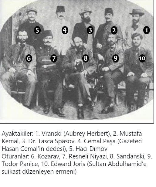 “1905, İttihat Terakki Selanik; 1.Vranski “Aubrey Herbert” 2.Atatürk 3.Dr.Tasca